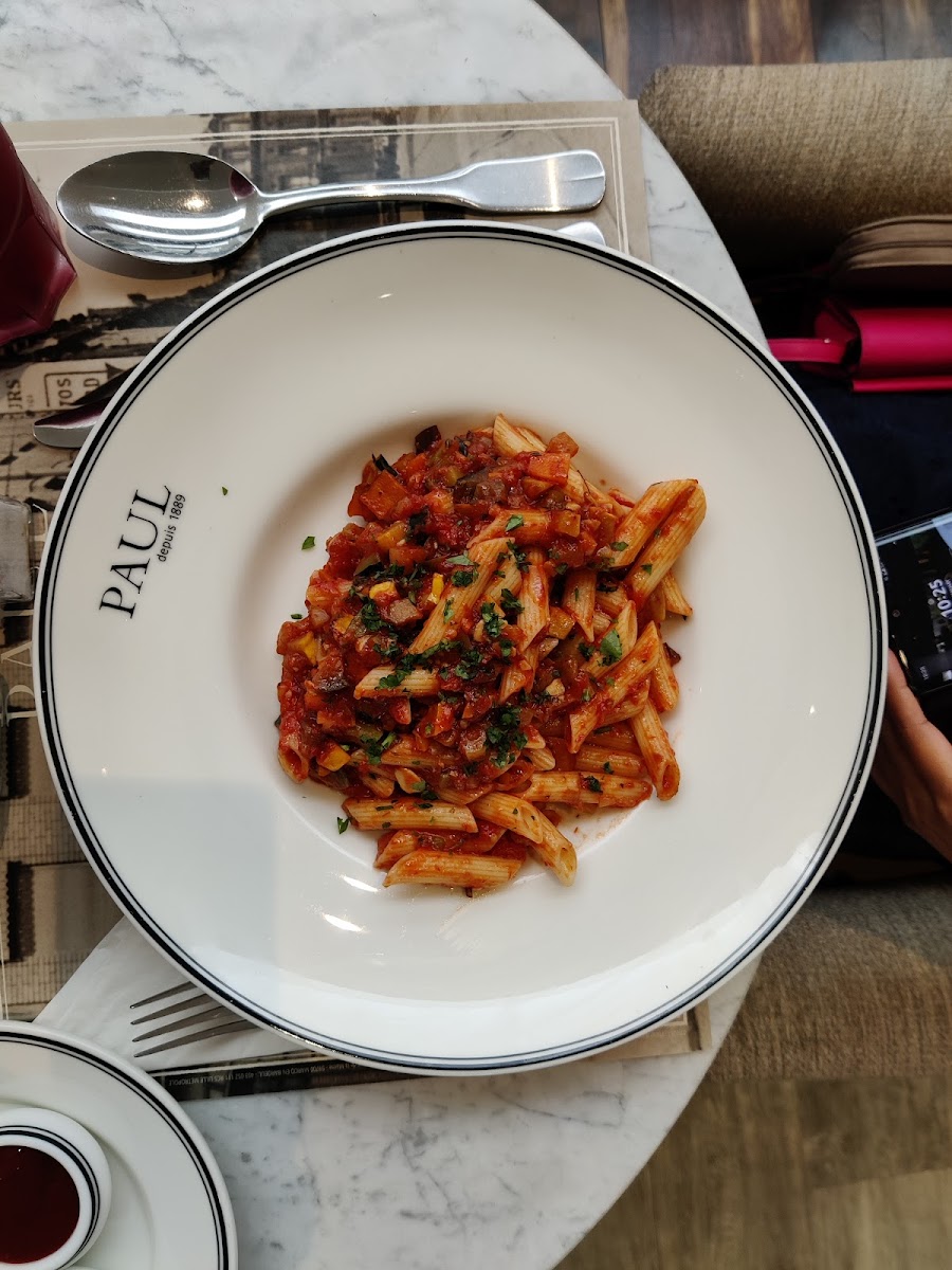 I really enjoy PAUL — the food is consistently tasty, especially the pastries and sandwiches. The service was polite and efficient, and the overall atmosphere inside is quite pleasant. However, I was a bit disappointed to learn that if you choose to sit outside, they only serve food in takeaway packaging and drinks in plastic cups. It takes away from the café experience a bit. Still, a solid place for a quick bite or coffee, just better enjoyed indoors.